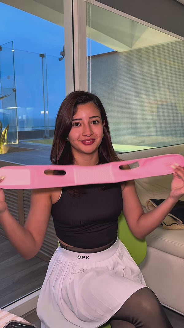 "Siempre tuve complejo con mi papada, pero con esta faja facial me siento mucho más confiada. ¡Es parte de mi rutina diaria!"